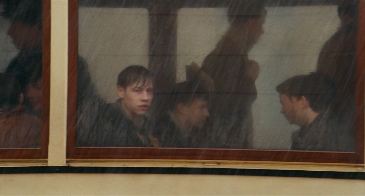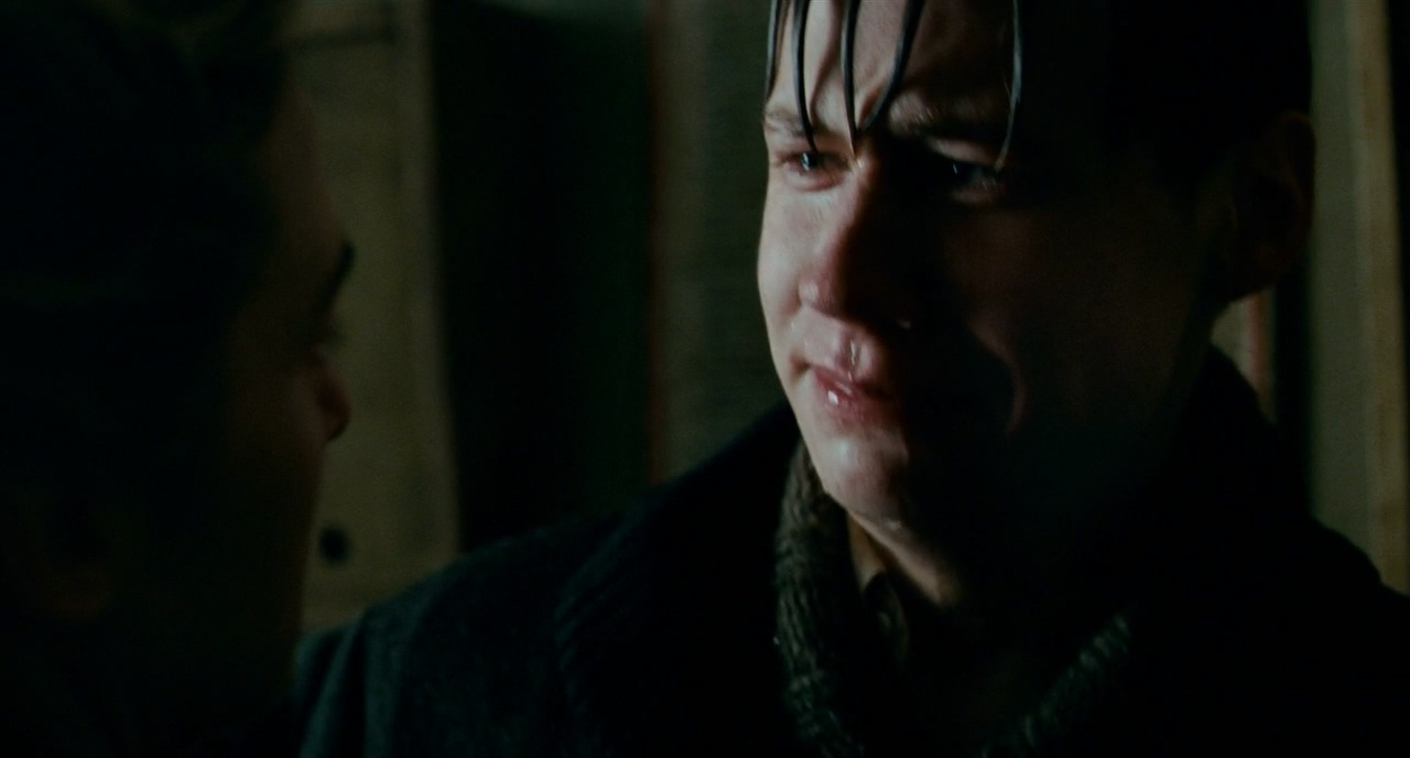 이전의 톤과 전혀 맞지 않는 세피아 톤에다, 미세하게 핸드헬드로 흔들리며 좌에서 우로 패닝되는 카메라, 갑작스레 비가 오는 날씨, 그리고 카메라를 직시하는 앳된 소년의 얼굴까지. 그야말로 갑작스럽고 이상한 컷이다.