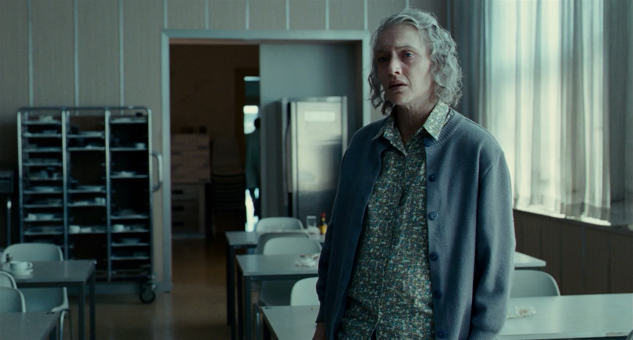 전혀 다른 느낌의 시점샷, 달리를 사용해 아주 느리고 천천히 한나를 보이게 만드는데, 이전 시점샷과 비교해서 인물이 프레임 끝 언저리에 거의 걸쳐있는데다 과할 정도로 넓은 여백이 특징이다. 그리고 한나의 좌측에서 아주 강한 데이라이트를 쐈는데, 오히려 인물을 돋보이게 만든다.