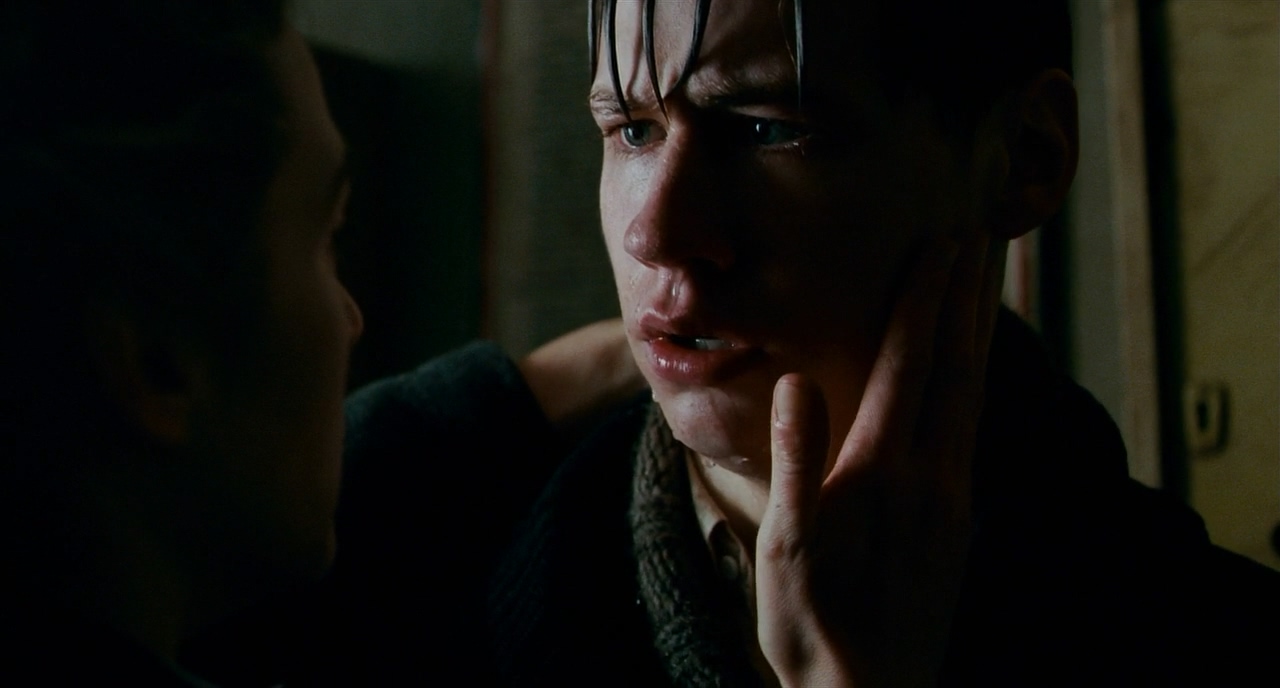 실루엣샷에서 백라이트나 측면 라이팅을 통해 인물의 외곽선을 살리는 동시에 조금이라도 디테일을 살리는 방향도 있었을텐데 이 장면의 측면샷은 인물을 완전히 암부로 만들어 죽여버린다. 대사와 표정을 드러내지 않고 인물의 상황을 더 돋보이게 하기 위한 최선의 선택이었다고 생각한다. 이후 영화의 전체적인 톤과 가장 반대되는 거의 유일한 시퀀스이기도 하니.