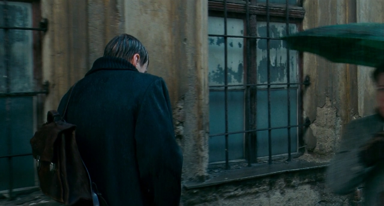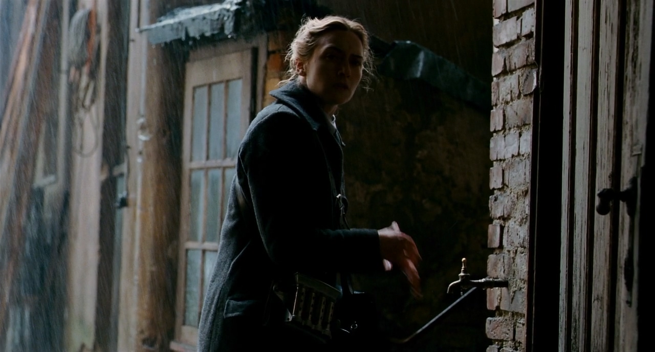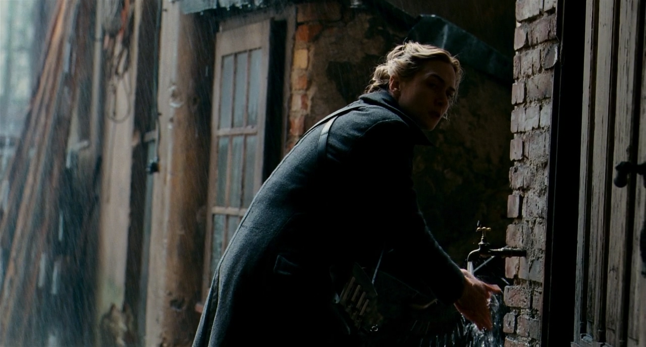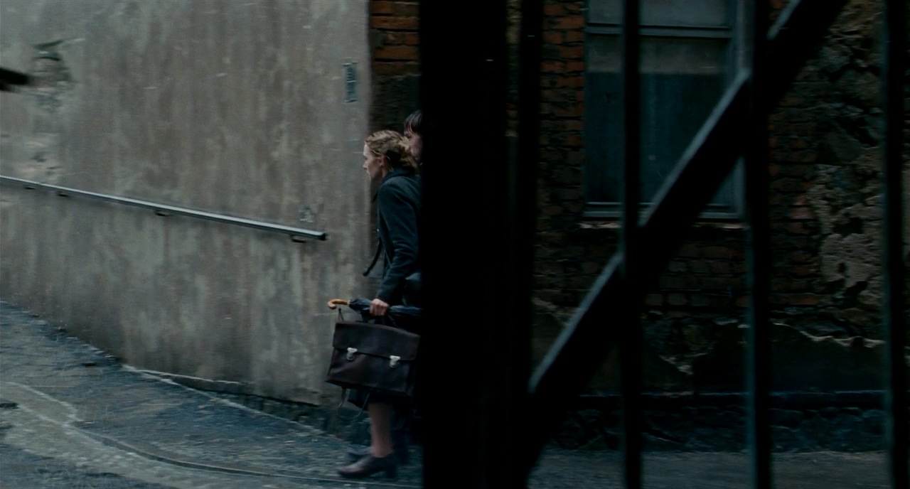 마찬가지로 우측에서 프레임 한 사람이 지나가자 B.S에서 지나가는 사람이 프레임 아웃하는 B.S에서 받는다. 이전의 감상한 영화들의 주요한 특징 중 하나가 시간과 연속성을 불문한 과감한 커팅이었다면, <더 리더>에서는 아주 작은 부분일지라도 기본적인 영화의 연속성을 철저하게 고수하려는 흔적이 보인다.