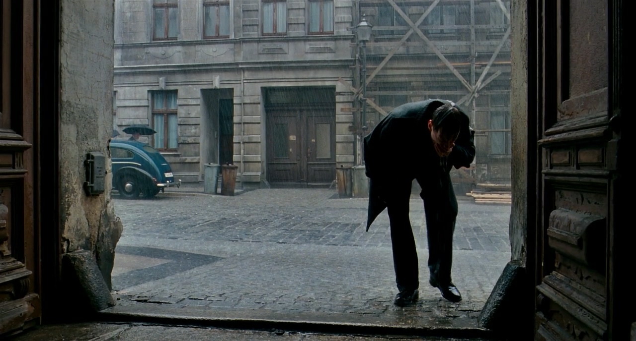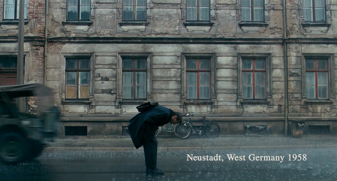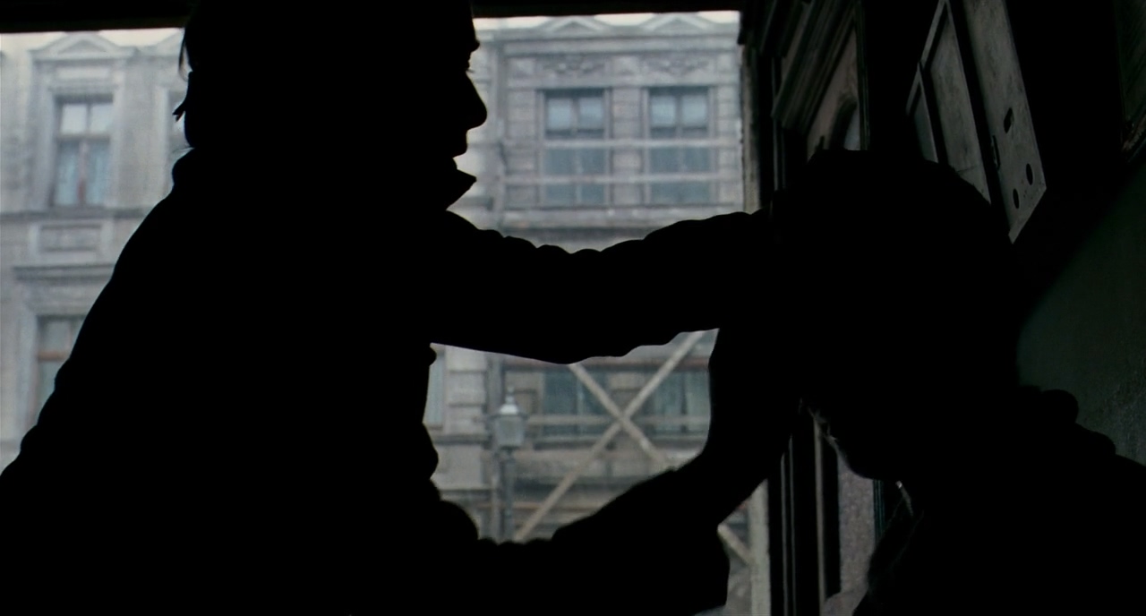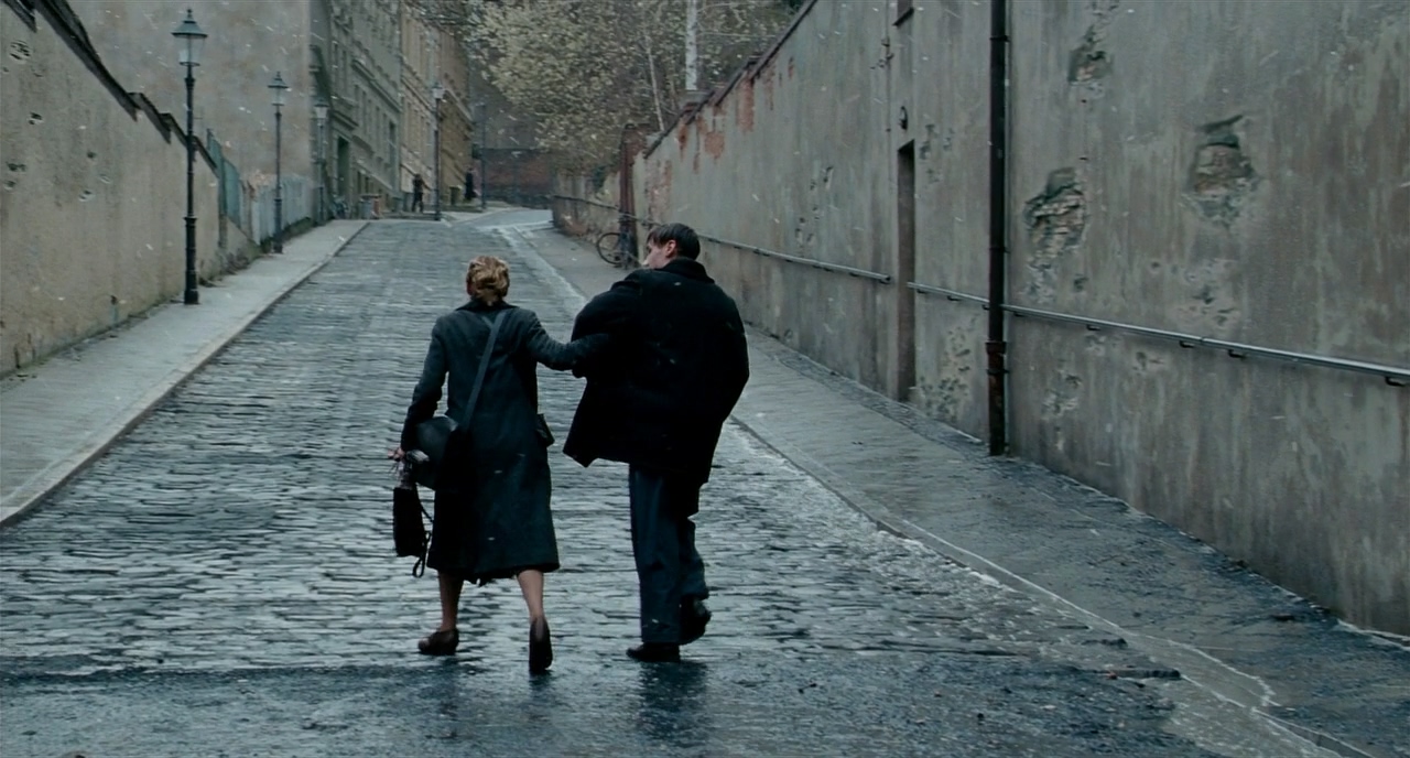 마찬가지로 우측에서 프레임 한 사람이 지나가자 B.S에서 지나가는 사람이 프레임 아웃하는 B.S에서 받는다. 이전의 감상한 영화들의 주요한 특징 중 하나가 시간과 연속성을 불문한 과감한 커팅이었다면, <더 리더>에서는 아주 작은 부분일지라도 기본적인 영화의 연속성을 철저하게 고수하려는 흔적이 보인다.