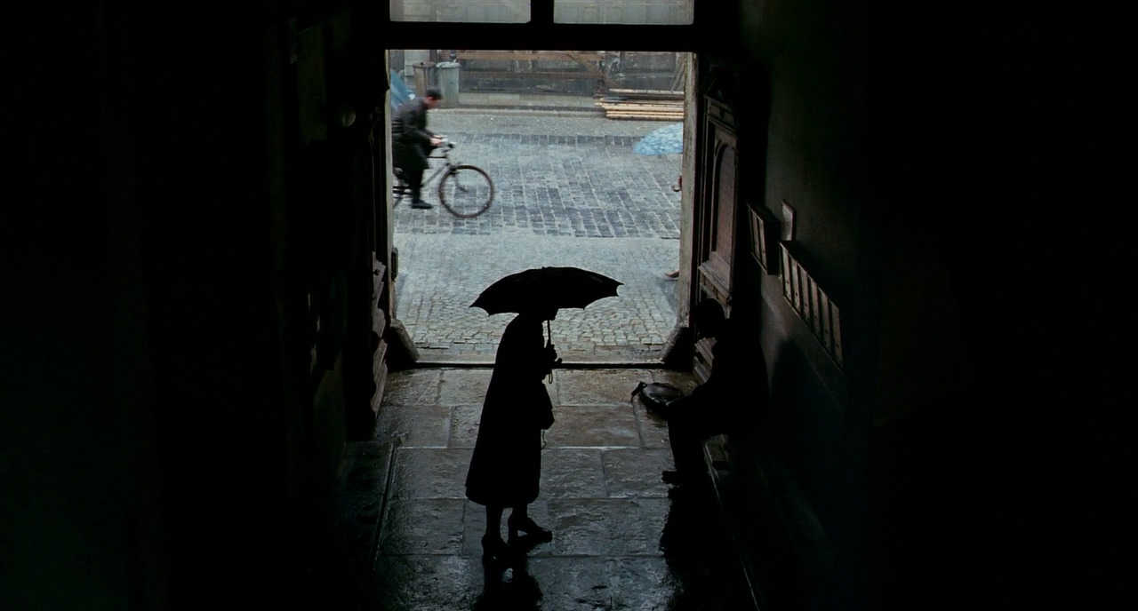 픽스 같아보이는 이 샷도 건물의 2층에 올라가 동일하게 카메라를 들고 촬영한 듯 보인다. 골목으로 들어선 순간 거리 노출의 극심한 차이로 완벽한 실루엣이 완성되는데, 동일한 실루엣이지만 벽에 붙어있는 마이클은 한나에 비해 많이 눈에 띄지 않는다. 철저하게 샷에서 숨어있는 듯한 느낌. 우산에 가려진 한나의 모습은 얼굴조차 보이지 않고 프레임 아웃 하여 그리 중요한 인물처럼 비춰지지 않는다.