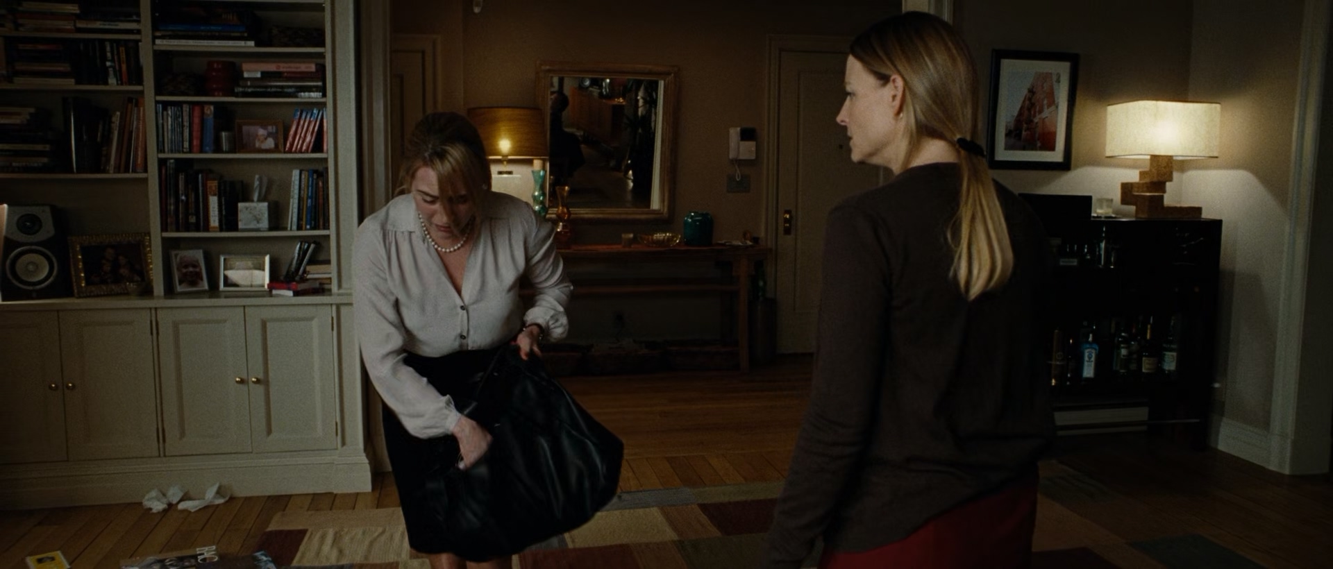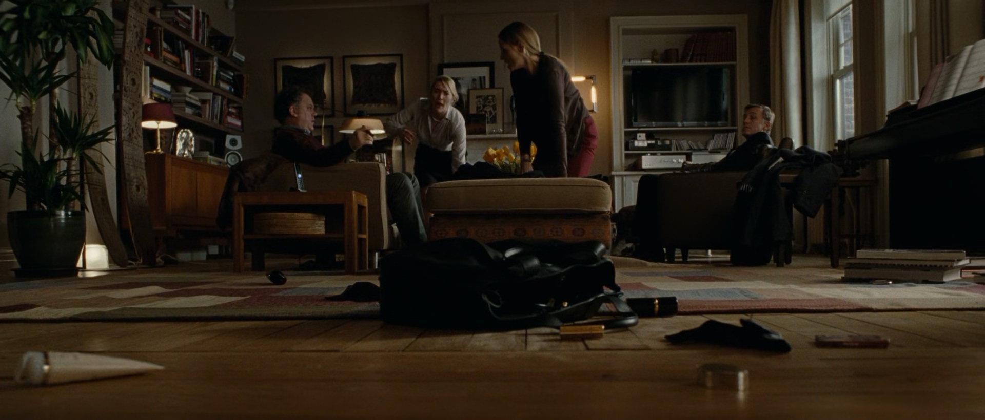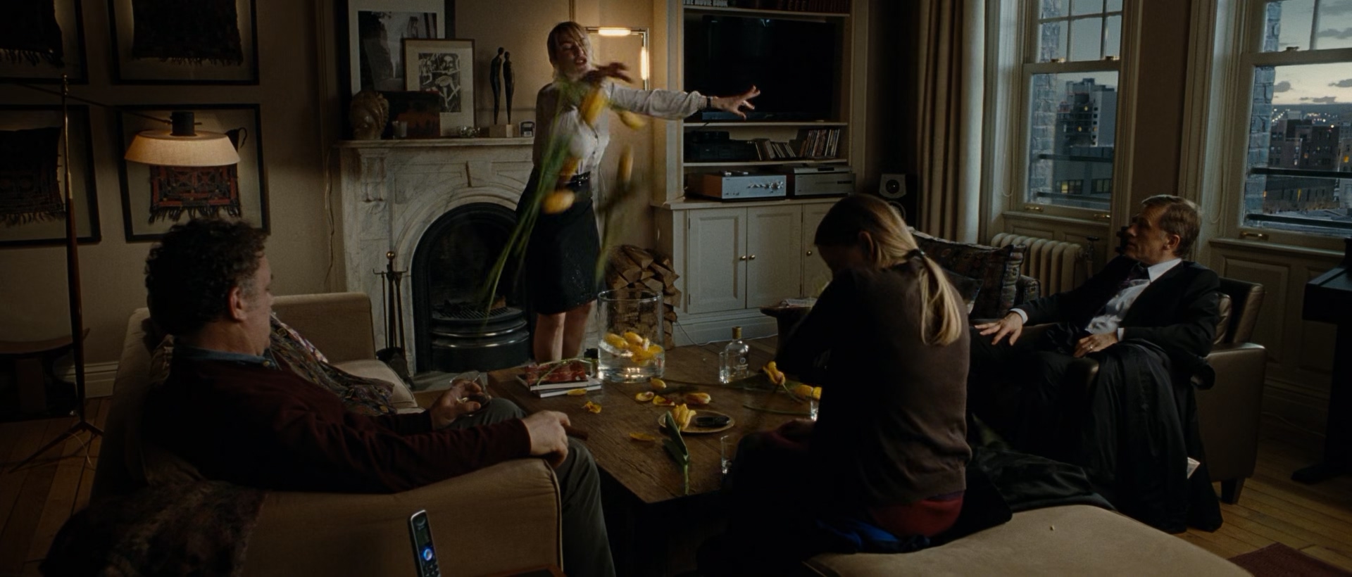 이 씬의 첫 시작인 페넬로피가 가방을 던지기 직전의 폭풍전야와 비슷한 느낌. 튤립을 마구 던지는 낸시의 샷 역시 마찬가지로, 막상 뭔가가 부서지고 던져지는 샷은 항상 멀리서 찍는다. 폭력과 분노를 작고 우스꽝스럽게 보이게 만드는 의도일까.