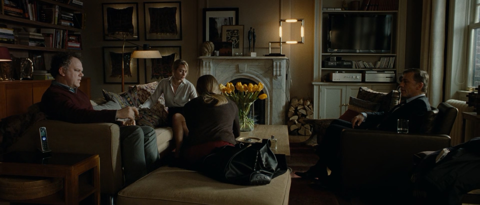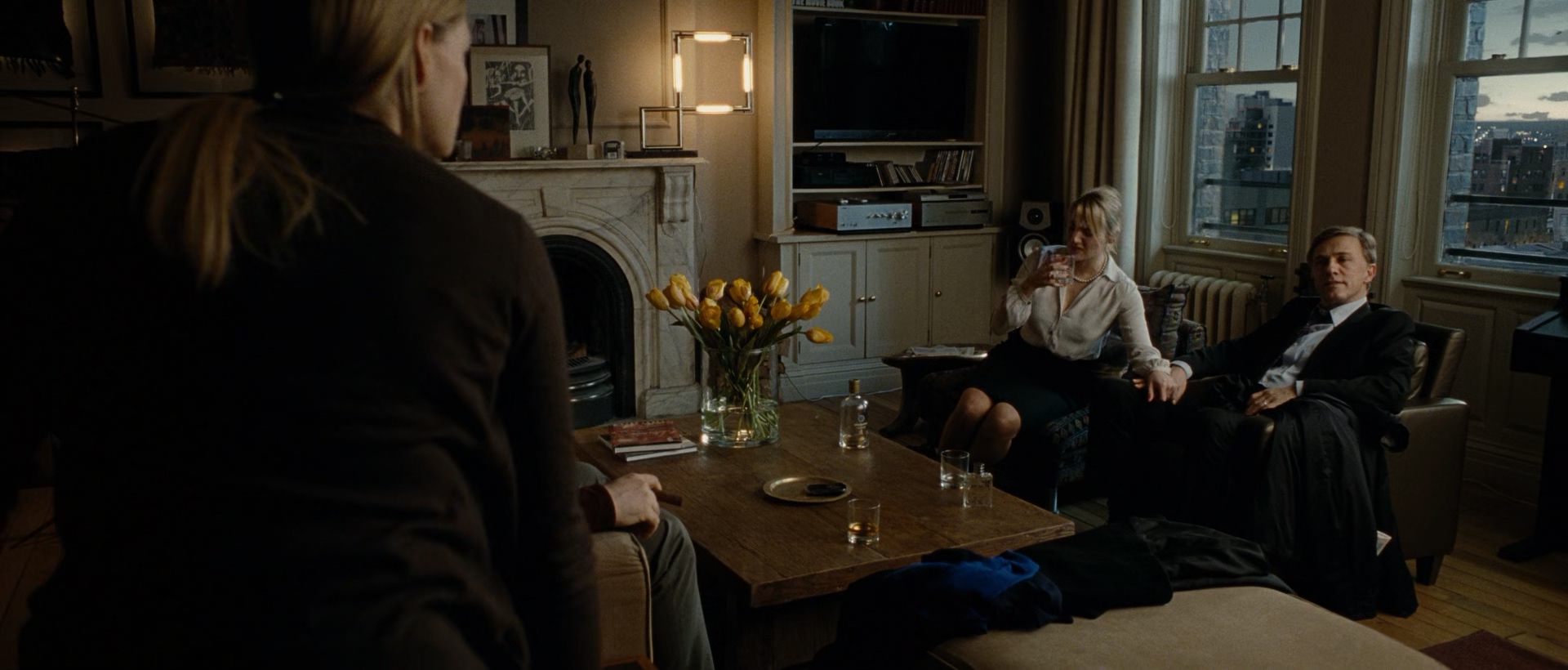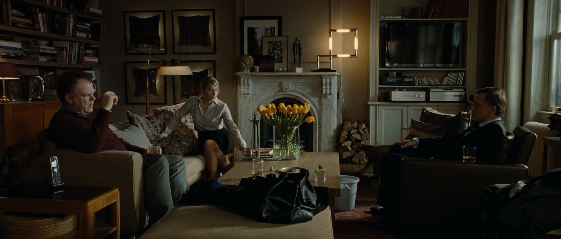 이 씬의 첫 시작인 페넬로피가 가방을 던지기 직전의 폭풍전야와 비슷한 느낌. 튤립을 마구 던지는 낸시의 샷 역시 마찬가지로, 막상 뭔가가 부서지고 던져지는 샷은 항상 멀리서 찍는다. 폭력과 분노를 작고 우스꽝스럽게 보이게 만드는 의도일까.