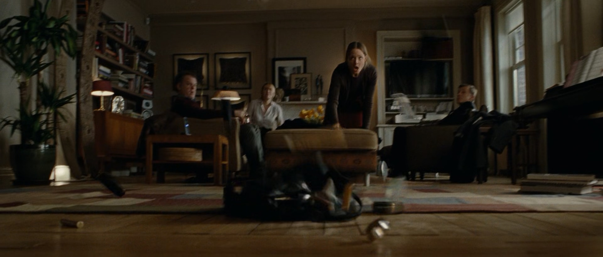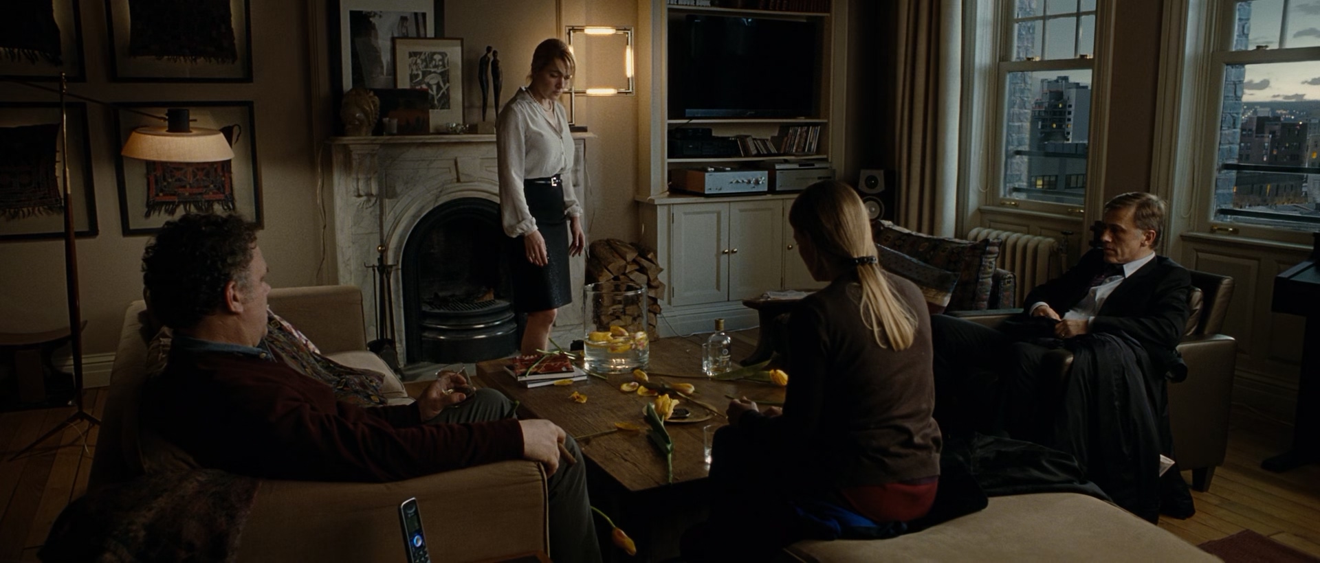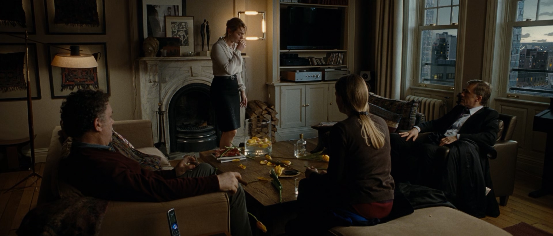 늘 같은 공간이 다르게 보일 정도로 다양하게 활용된다. 영화 초반에 풀샷이 샷을 절반으로 나누어 철저하게 부부들끼리 대립할 수 있도록 배치했다면, 후반으로 갈수록 인물 개개인이 전부 적대적으로 변하며, 배치가 뒤얽히게 시작한다!
