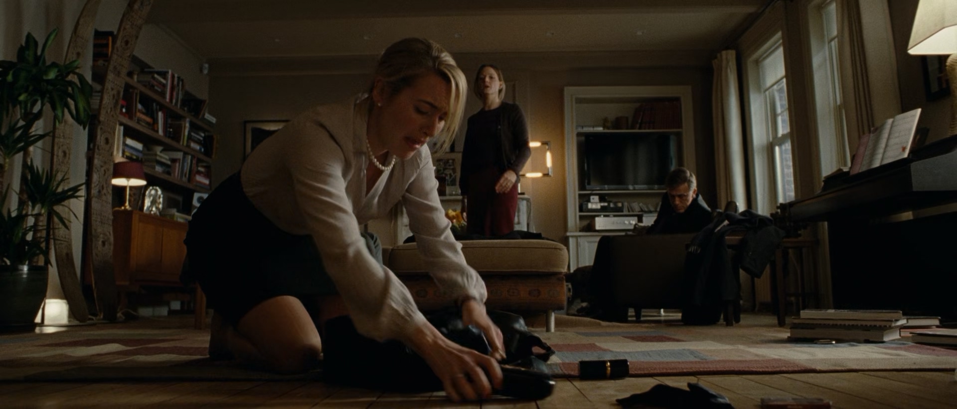 이 씬에서도 역시 화면 밖에 있던 페넬로피가 화면 안으로 들어오며 상당히 기묘한 대치구도가 만들어진다. 핸드폰을 화병에 빠뜨리고 남편들을 잔뜩 약올리며 의기투합했던 낸시와 페넬로피의 대치구도가 준비되고, 이후에 활약할 앨런은 대기하라는 듯 홀로 우측에 있다.