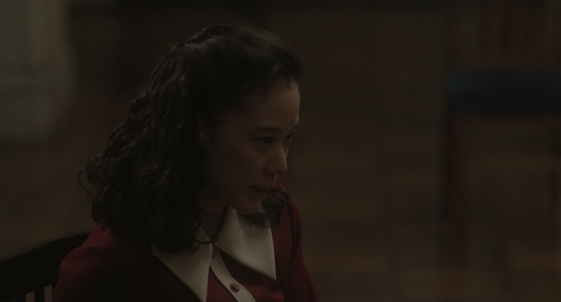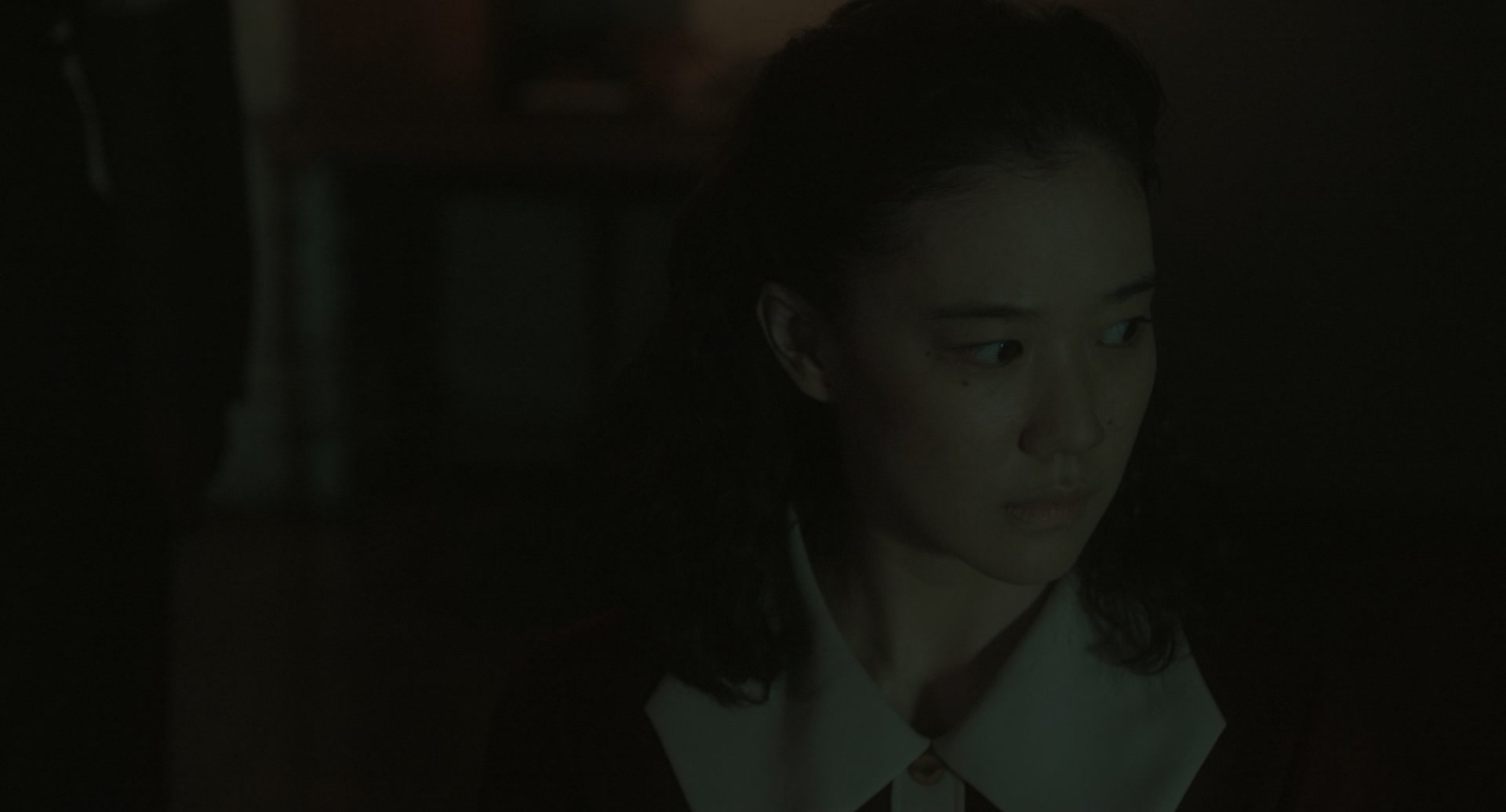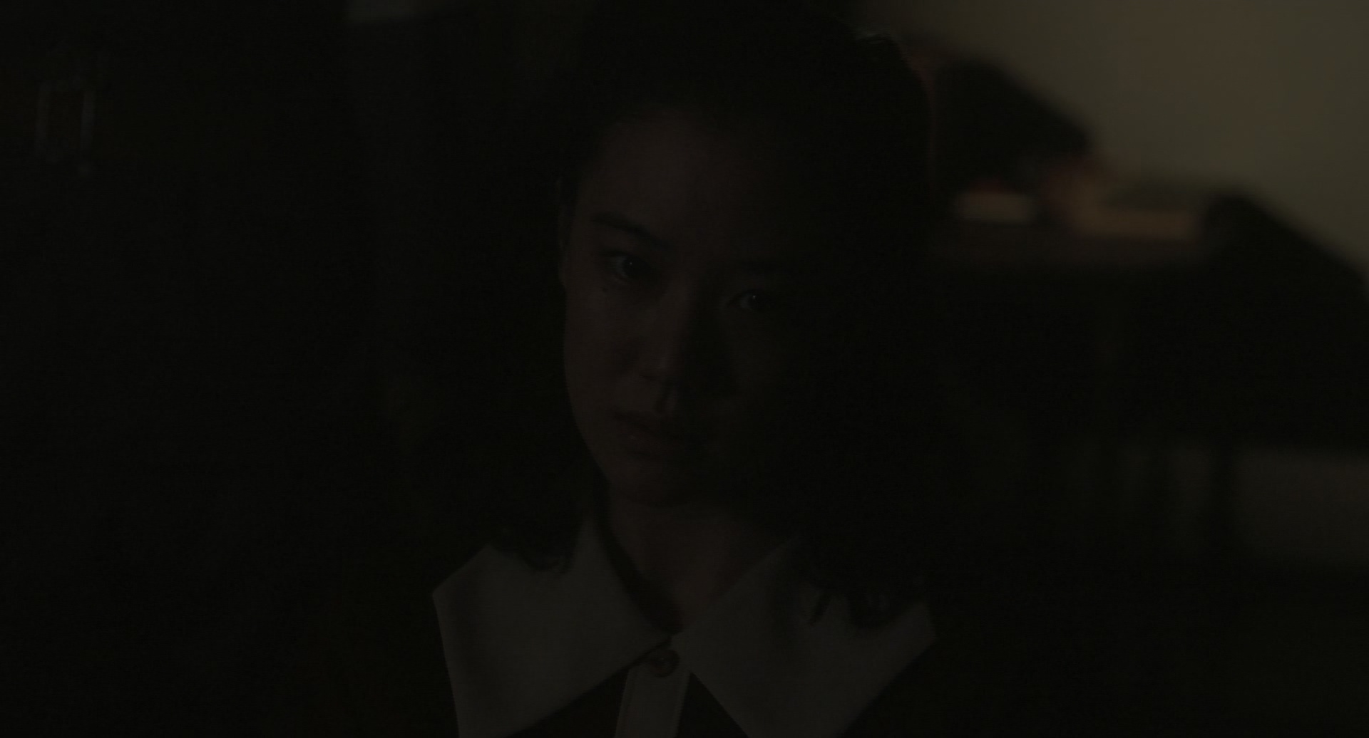 가끔 이렇게 인물을 따라가지 않고 자발적으로 움직여서 인물을 비추는 카메라 무빙이 상당히 극적인 느낌을 주는 장치라고 생각한다. 이런 트래킹을 따라 비장하고 결의에 찬 듯한 사토코의 표정이 부각된다.