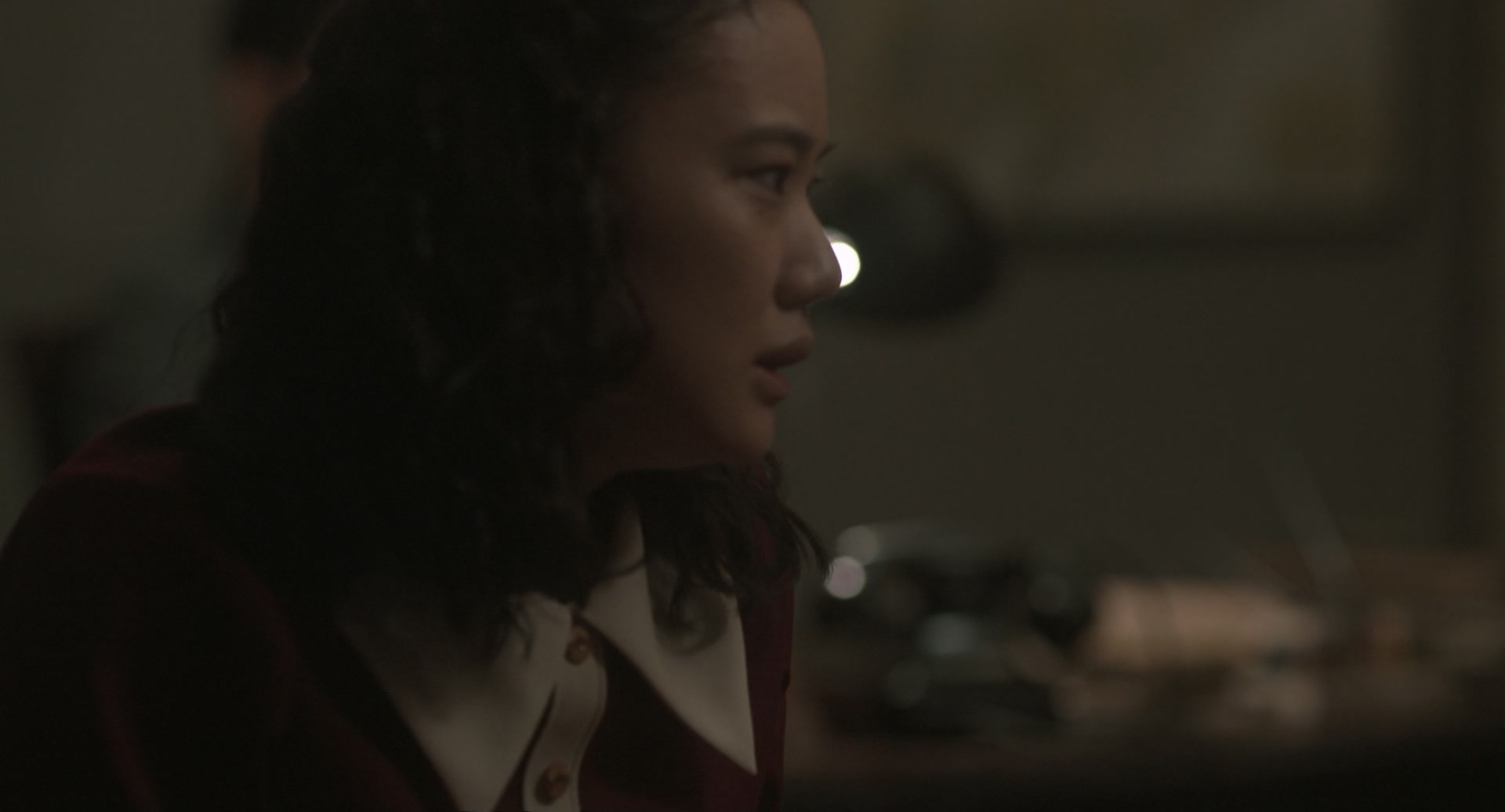 사토코와 타이지 두 인물의 단독샷을 끊지 않고 이어서 찍었다. 두 사람의 혼란스러운 감정을 잘 드러내는 샷. 엔드지점에서의 사토코의 샷은 헤드룸 없이 꽉 차있는 프레이밍이라 특히나 두려운 감정이 잘 보인다.