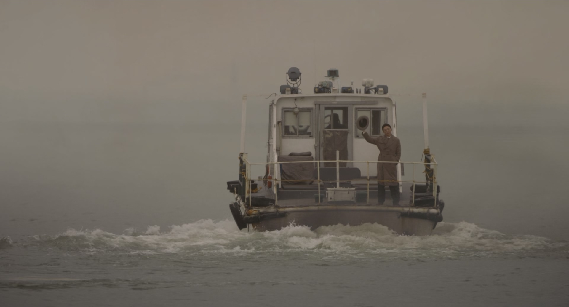 이어지는 노랫소리를 따라 배를 타고 떠나는 유사쿠의 화면. 이것은 쓰러진 사토코의 꿈일까, 마치 시점샷 같은 화면이다. 아마 진짜 영상이 든 필름은 저 배 안에 있을테다.
