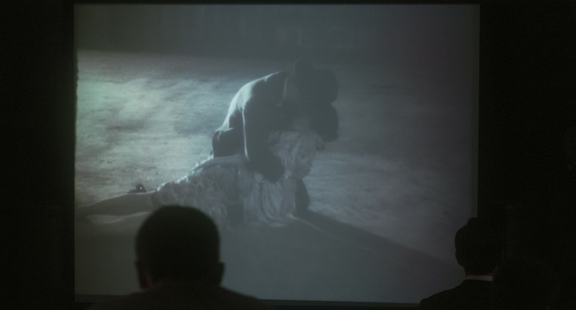 영사기 인서트샷. 와중에도 백그라운드는 끈임없이 움직이고, 준비하는 인물도 상영기와 카메라 사이를 왔다갔다... 쉴세가 없다. 카메라가 움직이지 않는다면 프레임 안에서 피사체의 여러 움직임이 반복되고, 카메라가 움직일 때 피사체는 움직이지 않고 고정되어 있는 패턴이다. 이런 샷들이 영화를 풍부하게 만든다.