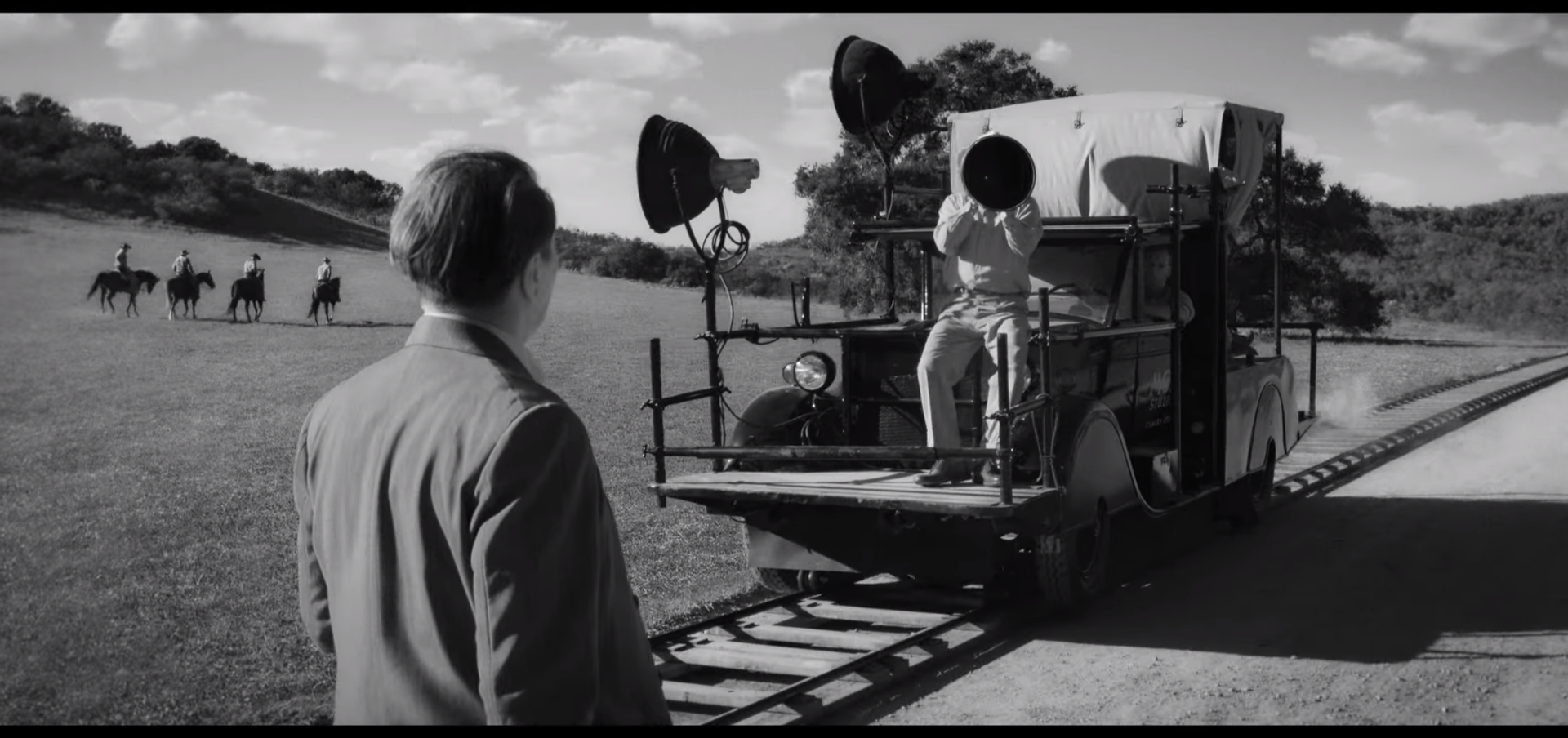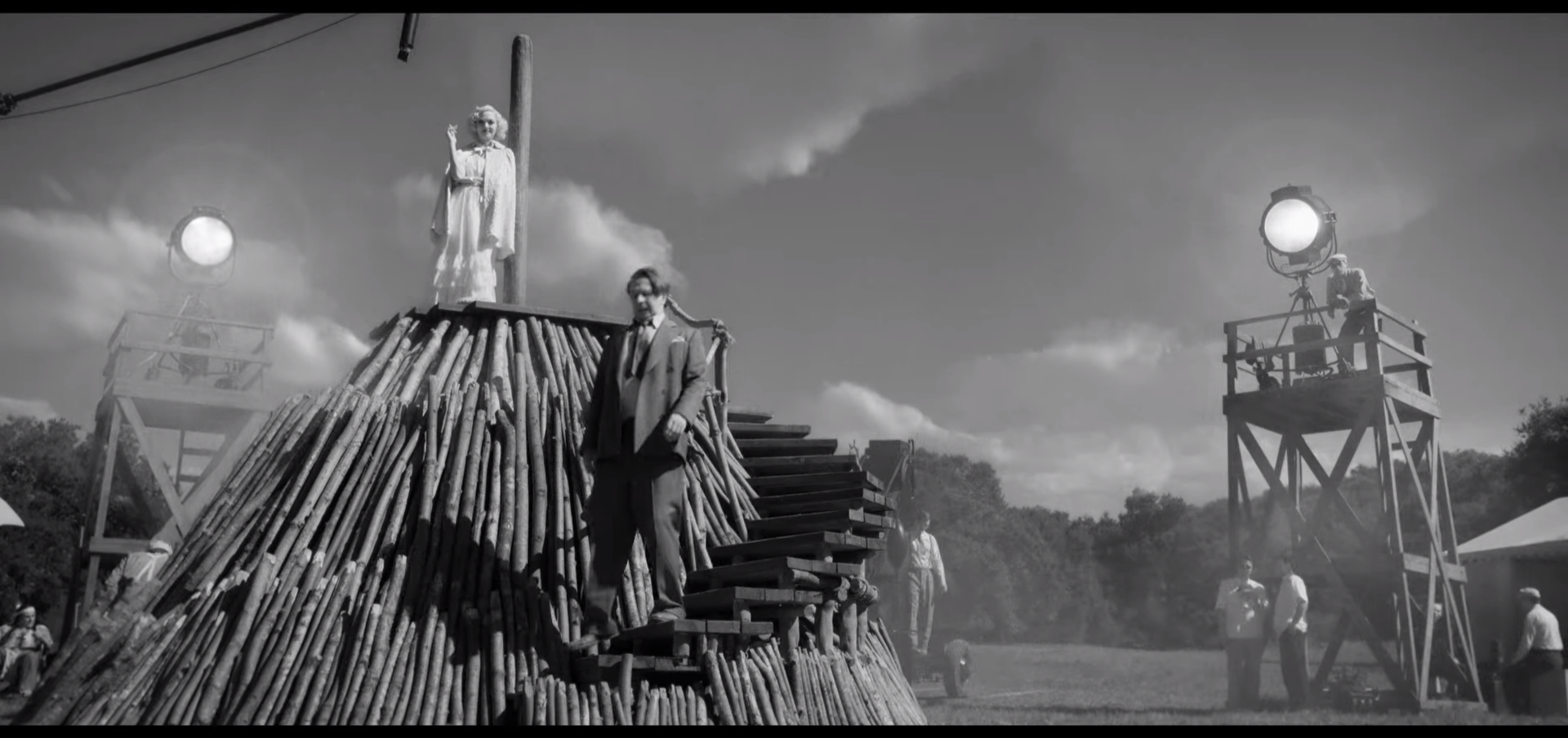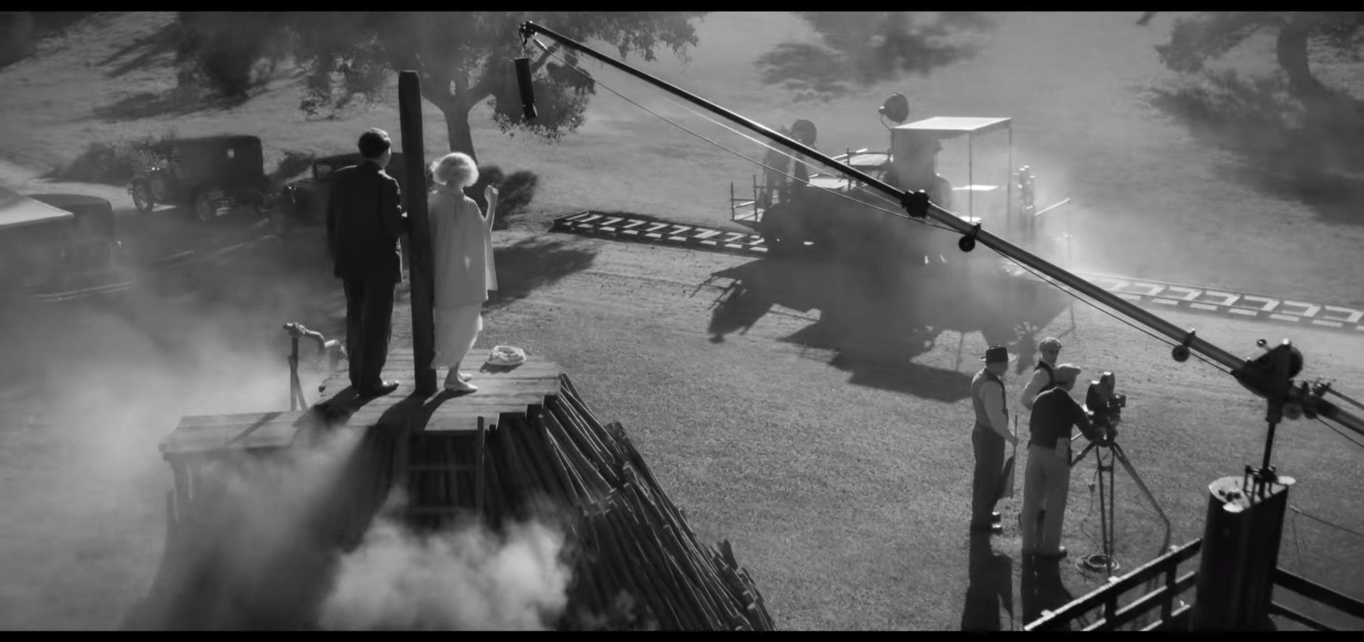 절대적인 위치에 있는 맹크와 마리온의 시선에서 촬영장을 훑는다.