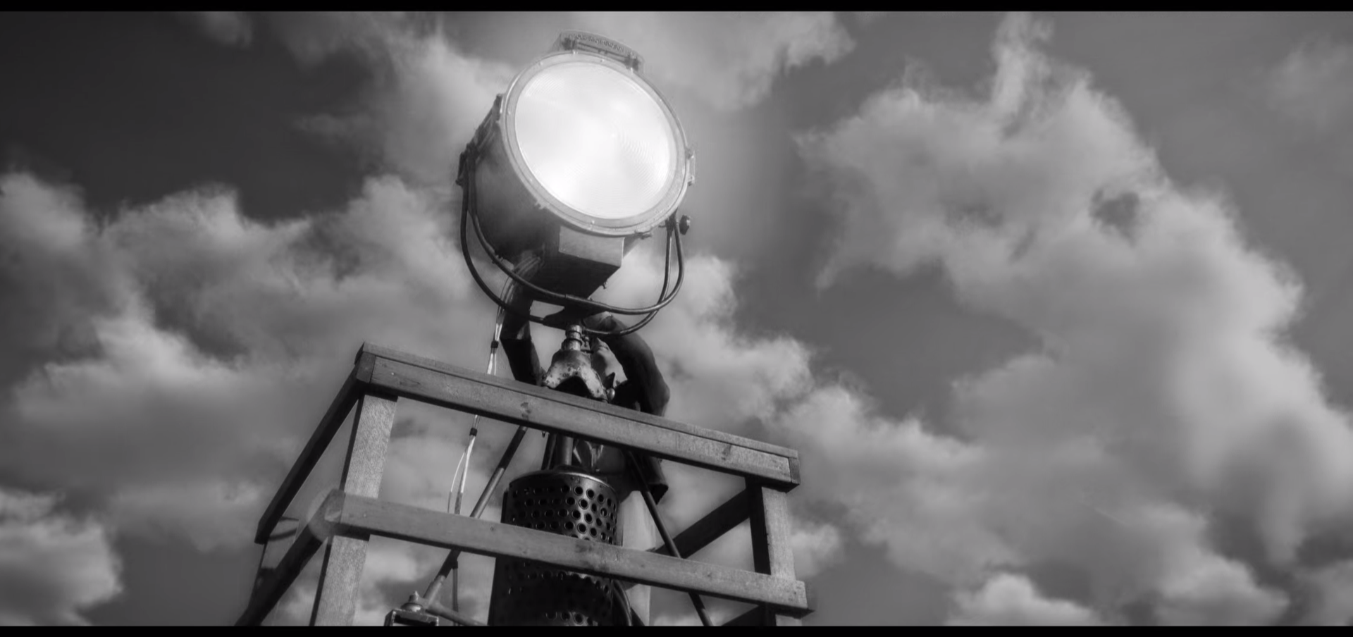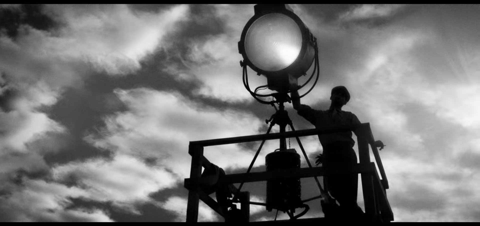 매우 연극적인 샷의 마무리, 촬영장에서의 회상이 끝나자 조명기를 끄며 함께 페이드 아웃 된다.