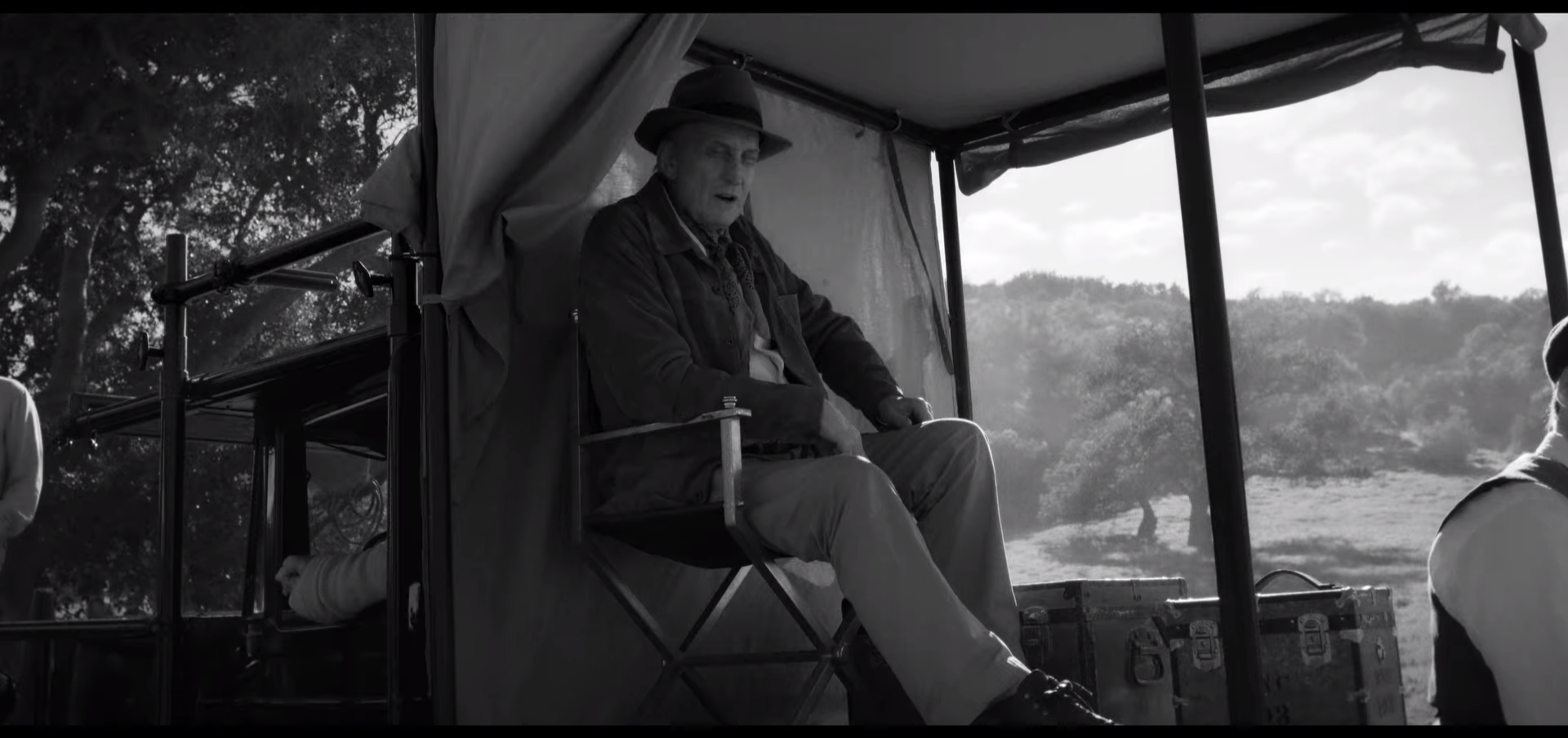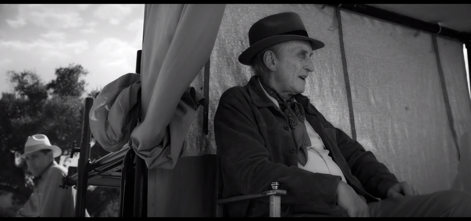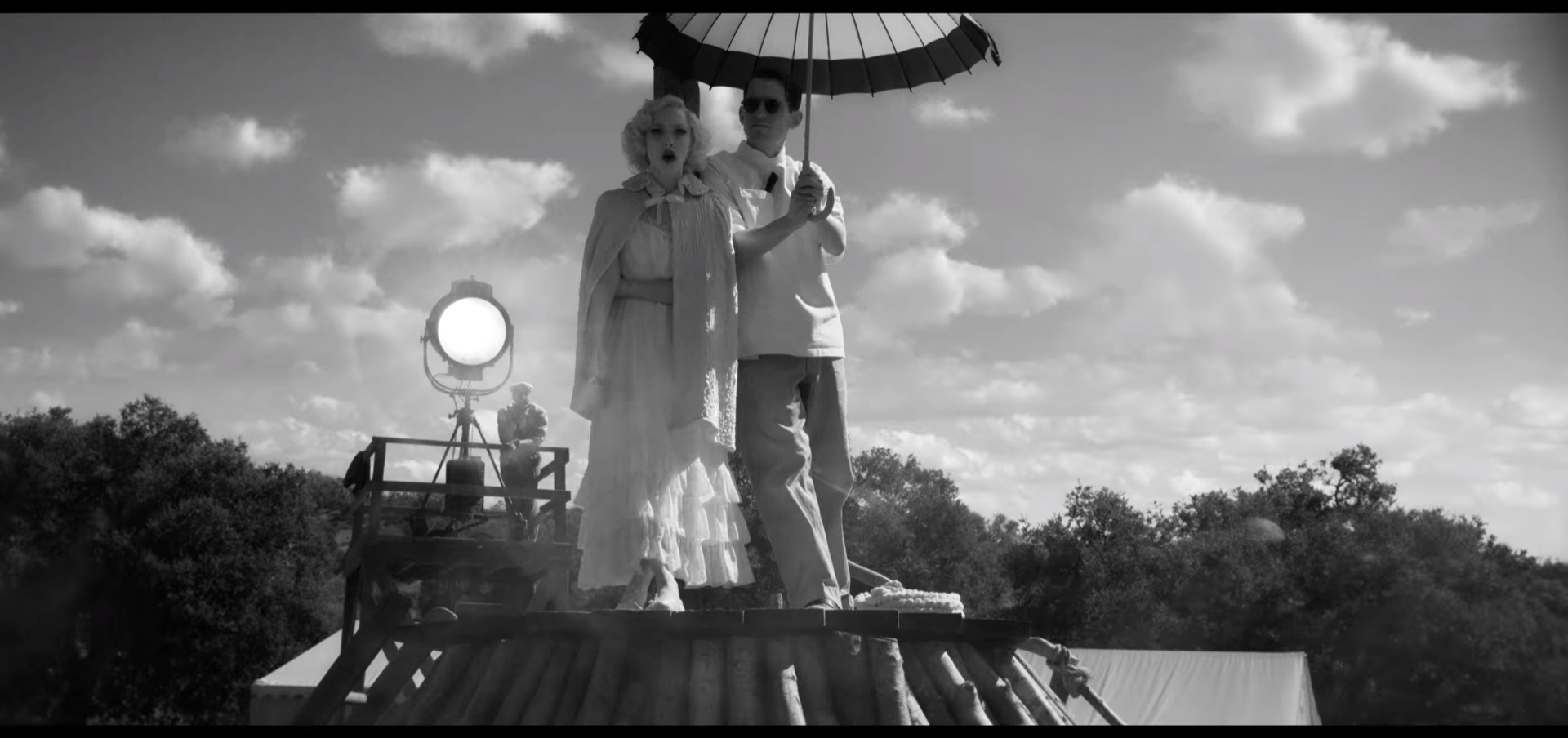 단순히 반복되는 샷들 뒤로 커피를 마시며 촬영장을 구경하는 제작 관계자들, 바쁘게 움직이는 스태프들, 낭만과 냉소가 동시에 가득 담겨 있다. 딥포커스를 통해 인물 뒷 배경의 티테일을 살리는 것이 시대배경을 더욱 잘 드러나게 하는 것.